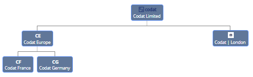 That same hierarchy would be 5 different companies on the Codat platform. Company 1: Codat Limited Company 2: Codat Europe Company 3: Codat France Company 4: Codat Germany Company 5: Codat | London
