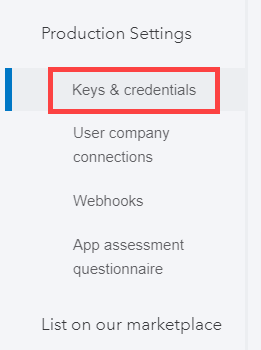 In the left menu, select Keys & credentials under Production Settings.